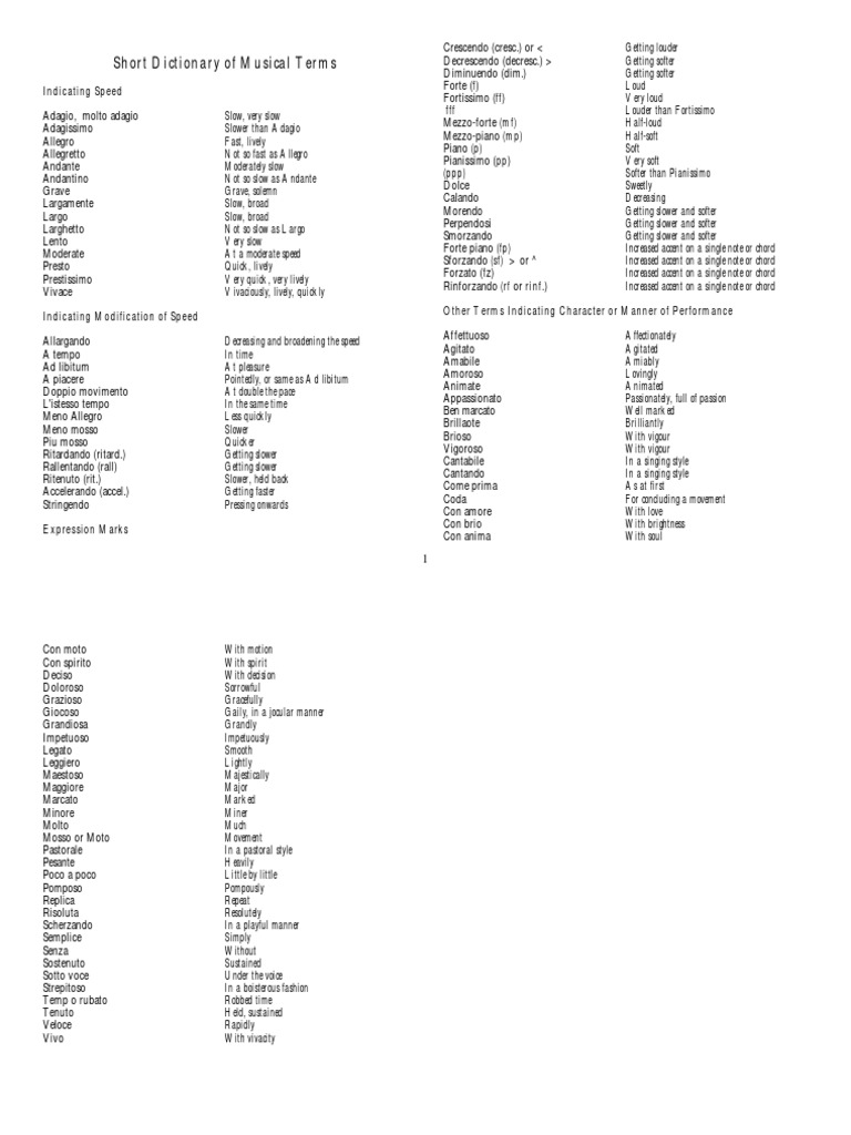 - Dictionary Of Musical Terms Terms Related To Dynamics , This List Contains The Most Common Abbreviations Used In The Oed.