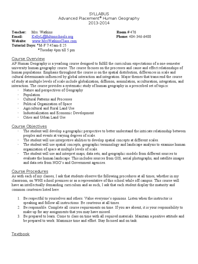 - Ap Human Geography Syllabus 2013 2014 Homework Geography : The Syllabus Mentions The Nature Of Geography And Cites The Relevant Chapters From The Resources Used To Teach The Course.