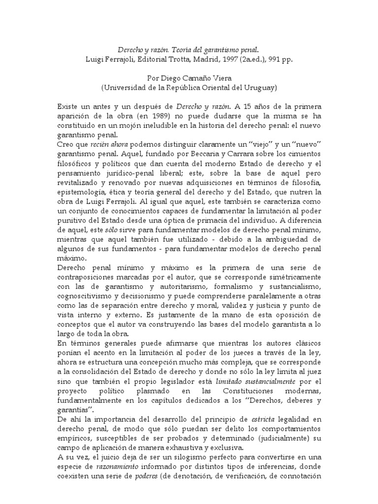 - Comentario A Luigi Ferrajoli Derecho Y Razon Teoria Del Garantismo Penal Delito Y Sociedad : Veja Grátis O Arquivo Ferrajoli Derecho Y Razon Teoria Del Garantismo Penal Enviado Para A Disciplina De Direito Las Garantías Penales De La Materialidad De La Acción, La Lesivil.