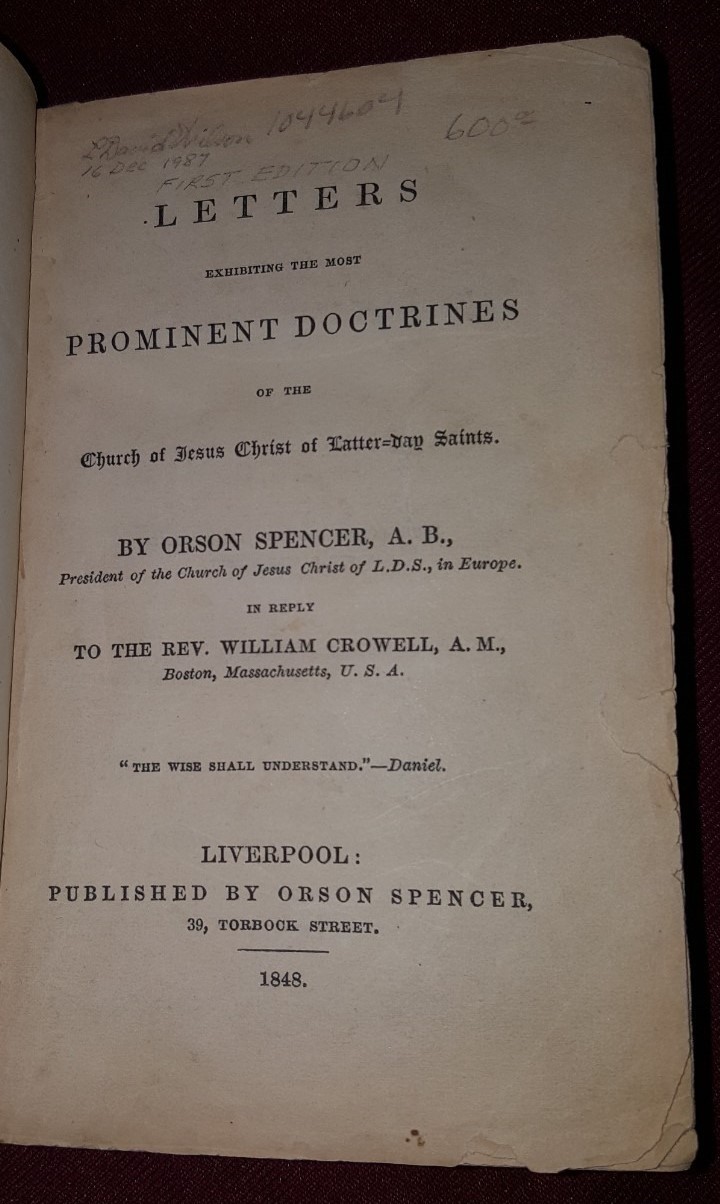 - Letters Exhibiting The Most Prominent Doctrines Of The Church Of Jesus Christ Of Latter Day Saints By Orson Spencer In Reply To The Rev William Crowell Spencer Orson 1802 1855 . William Crowell, A.m., Boston, Massachusetts, U.s.a.