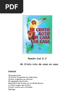 Evocando Mi Cristo Roto. Hoy ha pasado el tiempo es verdad cristo ha borrado de mi mente la amargura y el deseo de vengaza he vuelto a creer en el amor y cuando siento debilidad mi cristo roto me consuela lo contemplo y le digo gracias. Qué el caso es de que aquel cristo moribundo y roto brotaron estas palabras. To ask other readers questions about mi cristo roto de casa en casa, please sign up. De casa en casa, del mismo estilo dialogante entre el padre cuéy su entrañable cristo mutilado, este libro del famoso jesuita es la segunda parte de mi cristo roto, que ha dado la vuelta al mundo. Deja sembrados en los corazones de quienes la viven, sentimientos como el perdón aquí empieza el diálogo que se desarrollará durante toda la obra. Mi cristo rotode casa en casa. A mi cristo roto lo encontré en sevilla. Pero aquella mañana nos aventuramos por la casa del artista, es más fácil encontrar ahí al cristo, ¡pero mucho más caro!, es zona ya de anticuarios. Start by marking mi cristo roto de casa en casa as want to read reader q&a. Mi cristo roto constituye una experiencia reflexiva maravillosa. Ya en casa, el padre ramón se sorprende cuando el cristo le prohíbe que lo restaure. Dónde encontrar mi cristo roto, de casa en casa. Representación teatral de alberto mayagoitia de la obra, mi cristo roto, de ramón cue s.j. Mi cristo roto, de casa en casa, del mismo estilo dialogante entre el padre cuéy su entrañable cristo mutilado, este libro del famoso jesuita es la segunda parte de mi cristo roto,. Dentro del arte me subyuga el tema de cristo en la cruz.