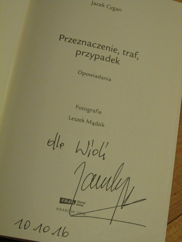- Przeznaczenie Traf Przypadek Czyli O Spotkaniu Z Jackiem Cyganem Subiektywnie O Ksiazkach : Przeznaczenie, Traf, Przypadek, 26 Opowiadań Z Fotografiami Autorstwa Leszka Mądzika , Kraków 2016.